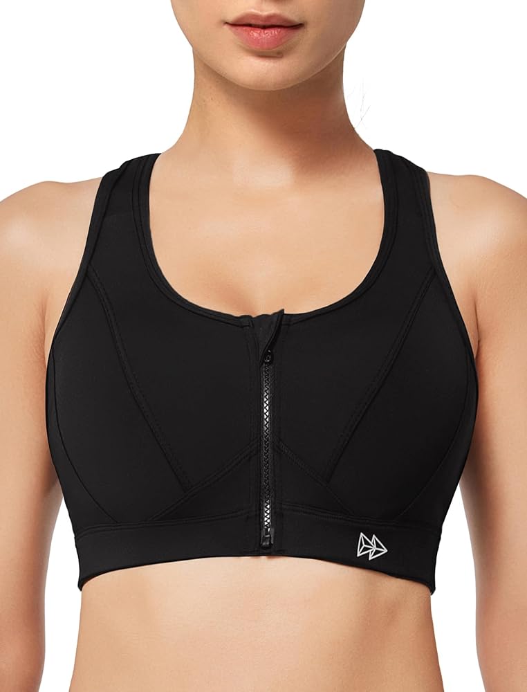 Secure-fit front zip bra made for workouts, gym, and high movement activities.