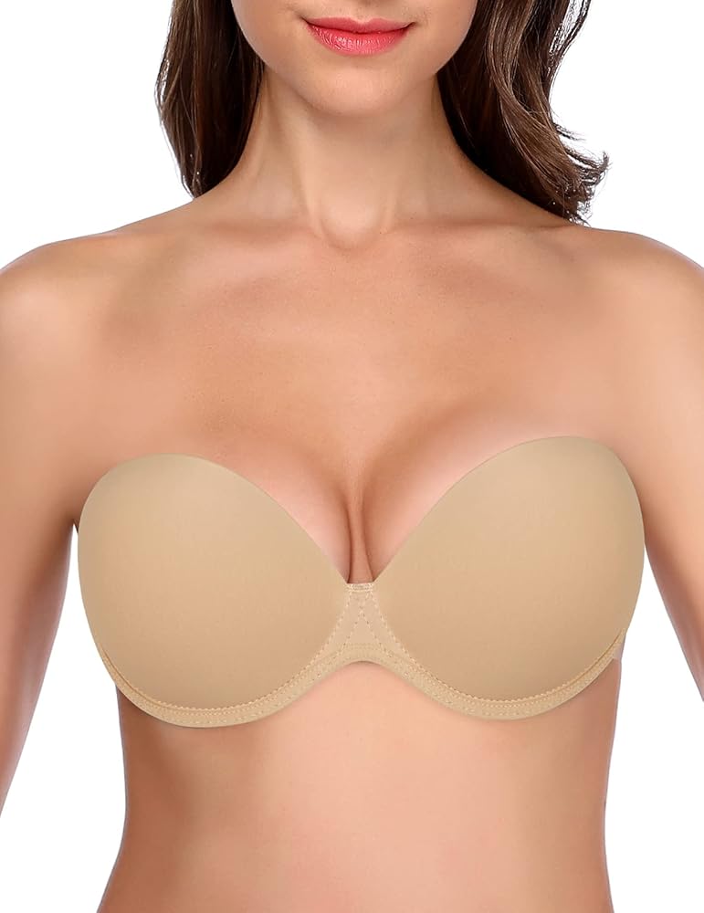 A strapless padded backless bra that provides seamless lift, invisible support, and comfort for off-shoulder and backless outfits.