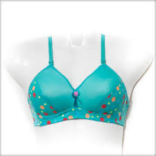 A trendy, modern printed bra design featuring a vibrant tie-dye pattern on soft cotton printed bras fabric, highly sought after for casual wear in warm climates.