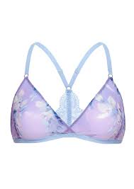A gorgeous, unlined printed bra featuring soft cups made from sheer mesh with an elegant embroidered print, offering a light, sensual feel (note: no push-up padding).